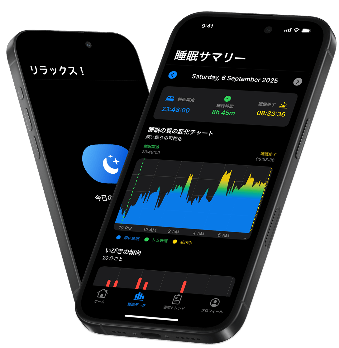 いびきを追跡し、客観的なデータをもとに、睡眠の状態を理解しながら、いびきを少しずつ改善していくことをサポートするアプリです。